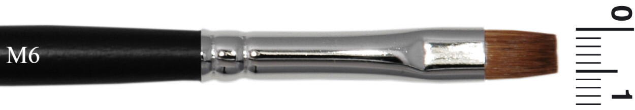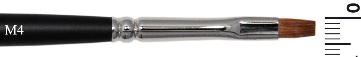 Marterhaar Penselen zijn verkrijgbaar in diverse vormen: rond (MR), plat (M), schuin (MS), en kattentong ( L). De penselen hebben een zwarte steel en het nummer geeft de breedte in mm aan.