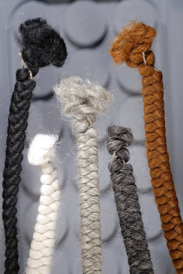 It is a series of pieces of sheep's wool (approximately 15 cm in length) braided together.